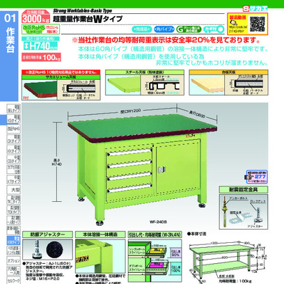 超重量作業台Wタイプ (改正RoHS10物質対応)WG-2 W1200×D800×H740