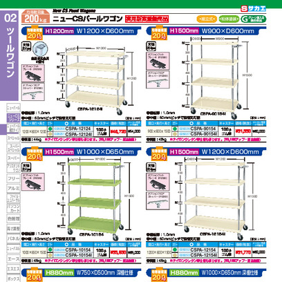 ニューCSパールワゴン(ゴム車・深棚仕様) CSPA-7512F W750×D500×H1200 【取扱停止】