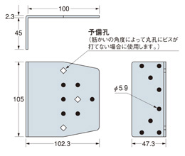 ・45mm×90mmの筋かい(壁倍率2倍)を柱に接合するときに使用します。