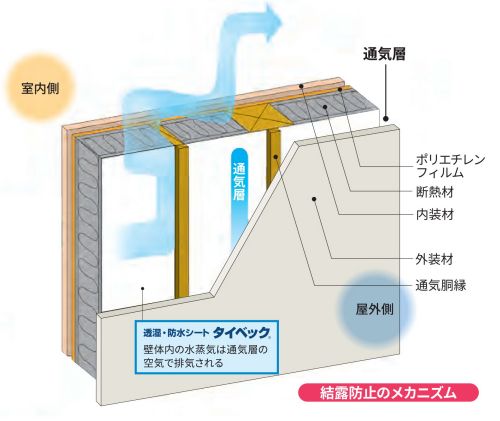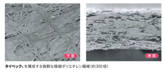 ・タイベック ハウスラップの極細繊維は、湿気は通しても水を通しません。