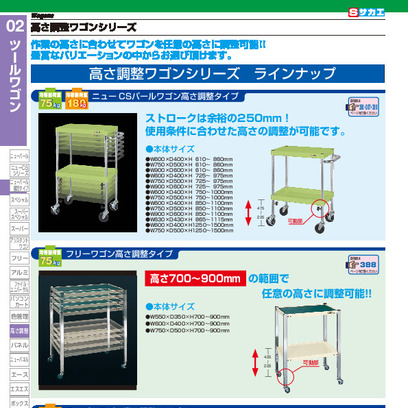 ニューCSパールワゴン高さ調整タイプ(ゴム車) TCSPA-608 W600×D400×H850~1100