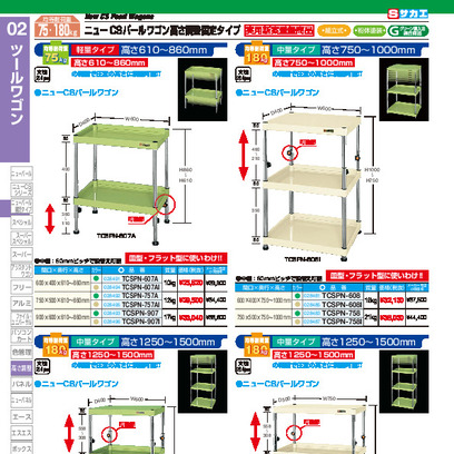 ニューCSパールワゴン高さ調整固定タイプ TCSPN-757AI W750×D500×H610~860