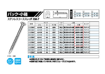 ステンコーススレッド XM-7箱入り(4.2×25/28/32/38/41/45/51/57)全ネジ