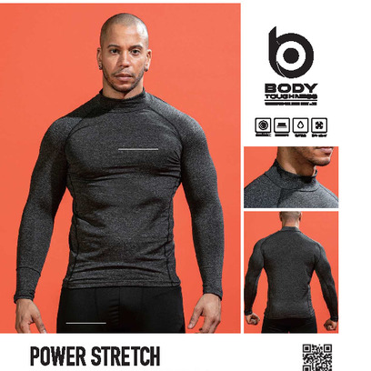 身体にフィットするコンプレッション機能が保温性と機動性を高める。吸汗速乾加工とレイズドファブリックにより快適な着心地をキープ。