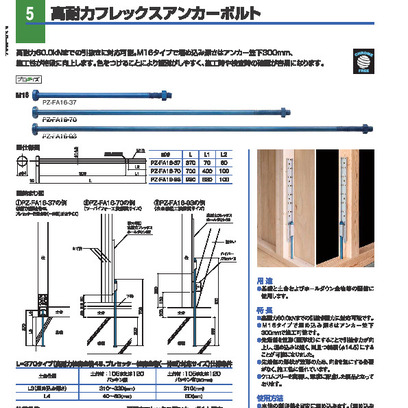 高耐力フレックスアンカーボルトM16 PZ-FA16 M16×370/800/930