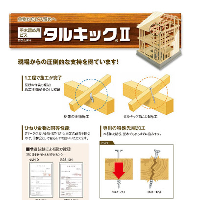 ビス1本で垂木施工が可能になるため、施工時間が短縮されます。