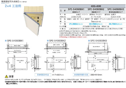 高気密型天井点検口(セット梱包品)SPC型 2×4工法用(断熱/高断熱/寒冷地高断熱) 400mm×600mm ホワイト