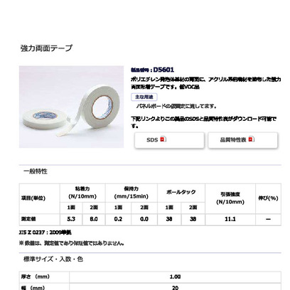 パネル用両面テープ D5601 厚み1mm×幅20mm×長さ1m 《10巻/小箱》