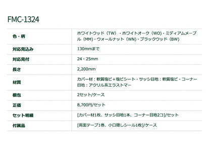 PaReno窓枠カバー FMC-1324 対応見込み130mm 対応見付24・25mm 長さ2200mm