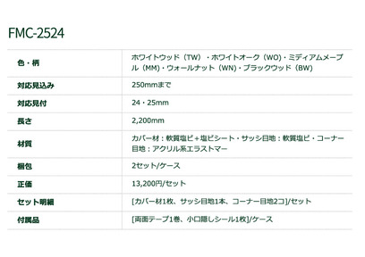 PaReno窓枠カバー FMC-2524 対応見込み250mm 対応見付24・25mm 長さ2200mm