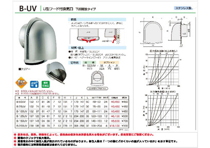 深型フ-ド付換気口 取付穴付 網無・網付(16M) B-50/75/100/125/150UV-P クリアー バクマ工業
