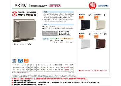 角型横吹出し換気口 網無・網付(3/5/10M) 水止め付 SK-100/150RV-M-CS シャンパンシルバー【受注生産品】