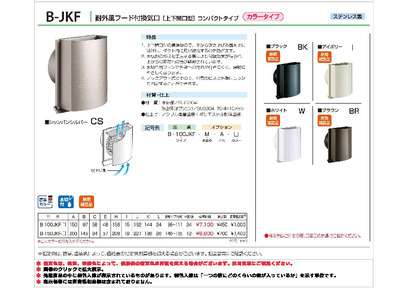 耐外風フード付換気口「上下開口型」コンパクトタイプ 網無・網付(10M) 水止め付 B-100/150JKF-M-BR ブラウン【受注生産品】