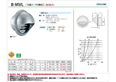 丸型フ-ド付換気口(開口部:大) 取付穴付 網無・網付(16M) B-75/100/150MVL-P クリアー バクマ工業