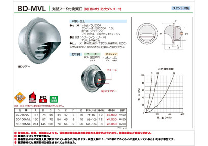 丸型フ-ド付換気口(開口部:大) 取付穴付 網無・網付(16M)【防火タイプ】 FD付 120℃ヒュ-ズ BD-75/100/150MVL-CS シャンパンシルバー バクマ工業
