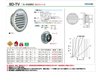 丸・平型換気口 網無・網付(16M)【防火タイプ】FD付120℃ヒューズ BD-75/100/125/150/200TV クリアー