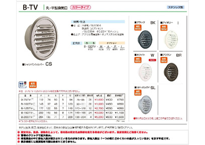 丸・平型換気口 水止め付・取付穴付 網無・網付(16M) B-100//150TV-M-P-I アイボリー【受注生産品】