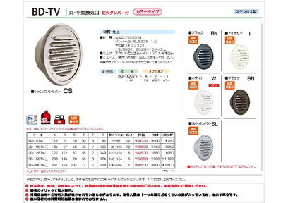 丸・平型換気口 網無・網付(16M)【防火タイプ】FD付120℃ヒューズ BD-75/100/125/150/200TV-W ホワイト【受注生産品】