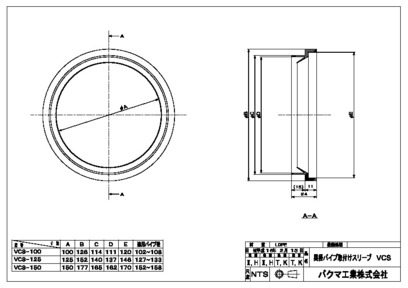 ベアキャップ用異径パイプ取り付けスリーブ VCSタイプ 100φ/125φ/150φ VCS-100/125/150