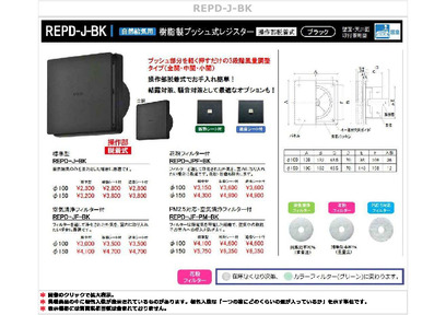 樹脂製プッシュ式レジスター [操作部脱着式] 花粉フィルター・断熱シート付 100φ/150φ REPD-100/150JPFK-BK ブラック