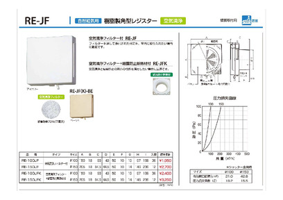 樹脂製角型レジスター【空気清浄フィルター・結露防止断熱材付】 100φ/150φ RE-100/150JFK-BE ベージュ