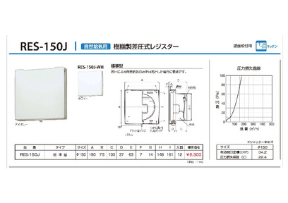 樹脂製差圧式レジスター【フィルター無】 RES-150J-WH ホワイト