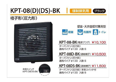パイプ用排気ファン 格子型(圧力計)100φ KPT-(08:電源プラグ)(08D:速結端子)(08DS:速結端子・スイッチ付)-BK ブラック