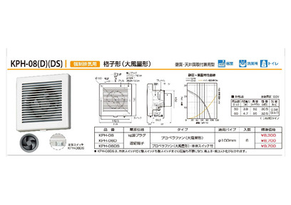パイプ用排気ファン 格子型(大風量計)100φ KPH-(08:電源プラグ)(08DS:速結端子・スイッチ付)