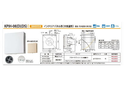 パイプ用排気ファン インテリアパネル形(大風量計)100φ KPIH-(08:電源プラグ)(08D:速結端子)(08DS:速結端子・スイッチ付)