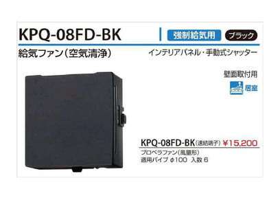 給気ファン[強制給気用]【空気清浄フィルター付】 KPQ-08FD-BK:速結端子 ブラック