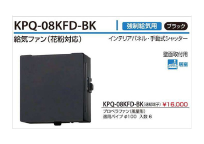 給気ファン[強制給気用]【花粉フィルター付】 KPQ-08KFD-BK:速結端子 ブラック
