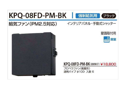 給気ファン[強制給気用]【空気清浄フィルター付】 KPQ-08FD-PM-BK:速結端子 ブラック
