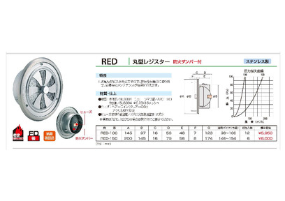 丸型レジスター 網付(16M)FD付72℃ヒューズ 100φ/150φ RED-100-150 ステンレス