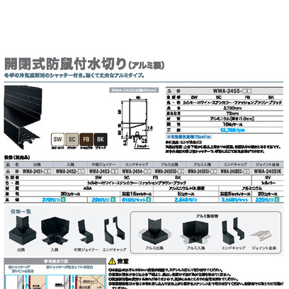 開閉式防鼠付き水切り(アルミ製) WMA-245S-SC 出幅46mm×長さ3750mm ステンカラー《画像長物本体・役物掲載あり》