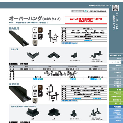 オーバーハング(鋼板製)穴ありタイプ【垂れ壁用】 HKF-38-BK 長さ2000mm ブラック《画像長物本体・役物掲載あり》