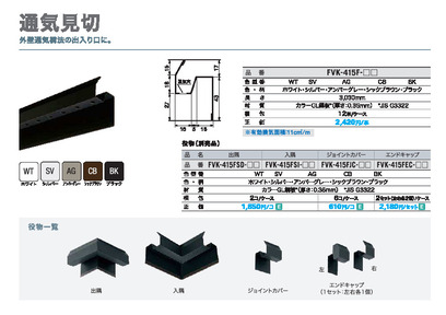通気見切(鋼板製)外壁通気工法 FVK-415F-BK 長さ3030mm ブラック《画像長物本体・役物掲載あり》