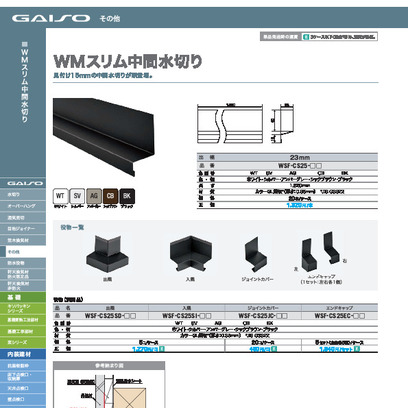 WMスリム中間水切り(鋼板製) WSF-CS25-AG 出幅23mm×1820mm アンバーグレー《画像長物本体・役物掲載あり》