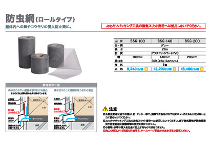 防虫網(18×16メッシュ) BSG 巾100/140/200mm×27m 城東テクノ