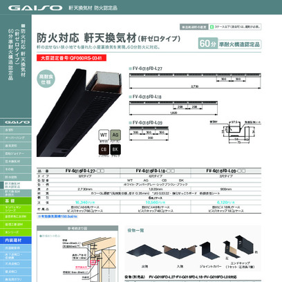 防火対応 軒天換気材(軒ゼロタイプ) FV-G016FD-L27/L18/L09-CB L2730/L1820/900mm シックブラウン《画像長物本体・役物掲載あり》 城東テクノ