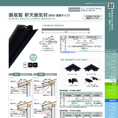 非防火 軒天換気材(軒先・壁際タイプ)適応軒天5・6mm FV-E06-L18-BK L1820mm ブラック《画像長物本体・役物掲載あり》 城東テクノ