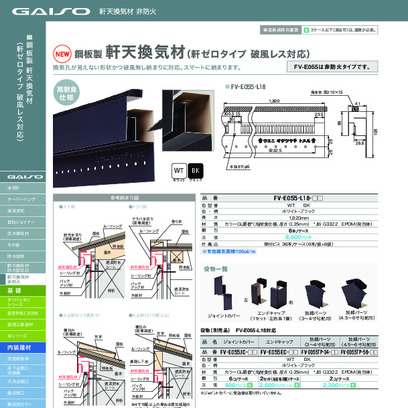 非防火 軒天換気材(軒ゼロタイプ 破風レス対応) FV-E055-L18-BK L1820mm ブラック《画像長物本体・役物掲載あり》