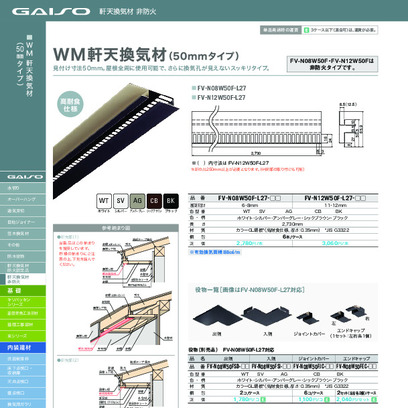 非防火 WM軒天換気材(50mmタイプ)適応軒天厚11・12mm FV-N12W50F-L27-BK L2730mm ブラック《画像長物本体・役物掲載あり》 城東テクノ