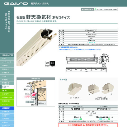 樹脂製 軒天換気材(軒ゼロタイプ) FV-016P-WT L1820mm ホワイト《画像長物本体・役物掲載あり》 城東テクノ
