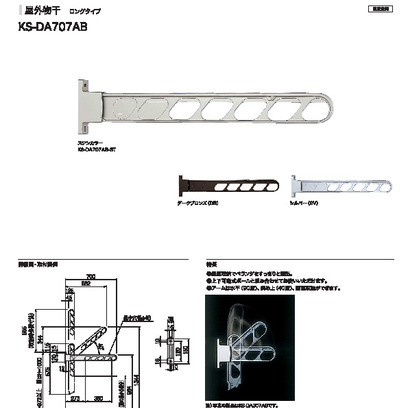屋外物干【ロングタイプ】 KS-DA707AB L=700mm ST/DB/SV 《2本入》