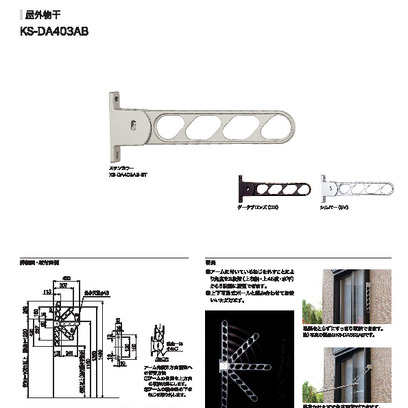 屋外物干 KS-DA403AB L=400mm ST/DB/SV 《2本入》