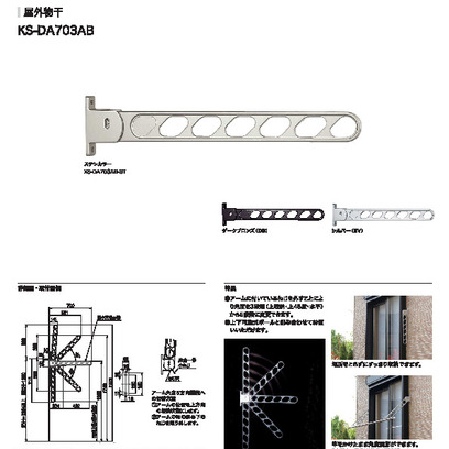 屋外物干 KS-DA703AB L=700mm ST/DB/SV 《2本入》