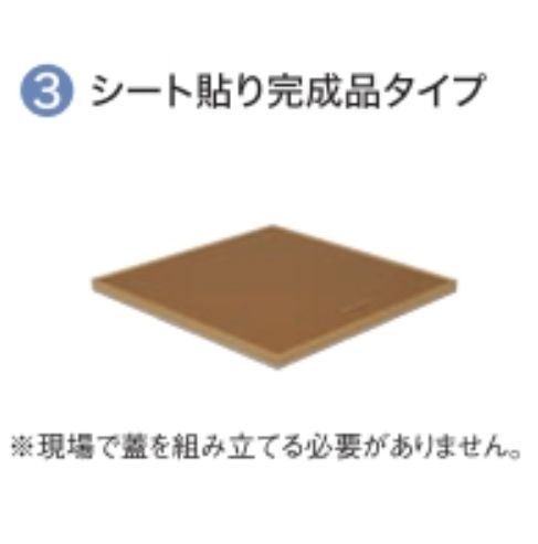 ●点検口蓋にはシートを貼った完成品、現場でクッションフロアを合わせるタイプ、