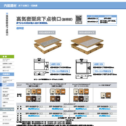高気密型床下点検口 標準型 SPF-R4560S 450×600(シート張り完成品) カラー:2色 城東テクノ