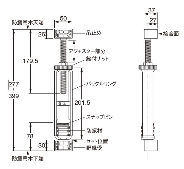 防震吊木 TH-30 長さMAX399mm(長さ調整範囲122mm含) ブラック