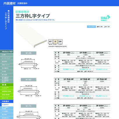 タイプ:三方枠 L字タイプ カラー:ホワイト、ウッドホワイト、アイボリー 間口:800 寸法:(幅)竪枠:150、上枠:148(実用寸法:138) (間口)800 (高さ)2,200 セット明細:竪枠:2本、上枠:1本/セット